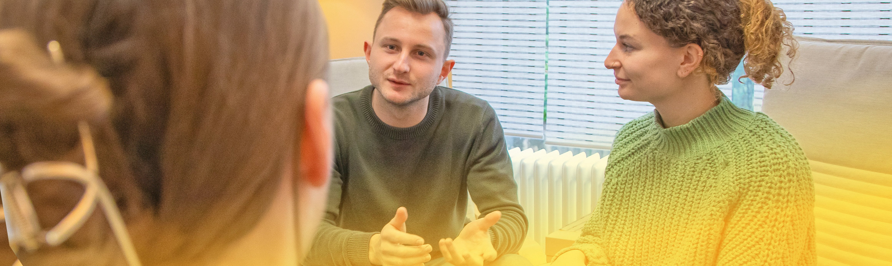 Dir stehen immer zwei Berater*innen zur Seite, die gemeinsam mit dir schauen, wie sie dich unterstützen können und welche Lösung für dich passend ist. Unsere Berater*innen sind Student*innen und somit selbst noch jung, sodass es für dich vielleicht leichter ist, von dir zu erzählen.